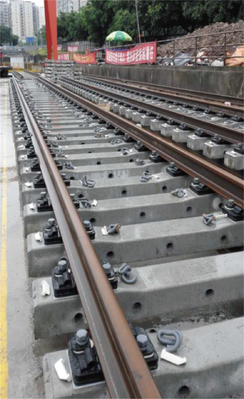 上部自鎖式雙層非線性減振扣件是第三代雙層非線性減振扣件,與普通彈性分開式扣件相比,減振效果可達8dB以上。該扣件系統(tǒng)結構緊湊、安裝維修方便,可用于城市軌道交通(包括市域鐵路)新線鋪設或既有線路改造,也適用于高架線小阻力路段,可以應用于道岔區(qū)域減振降噪,具有廣泛適應性。